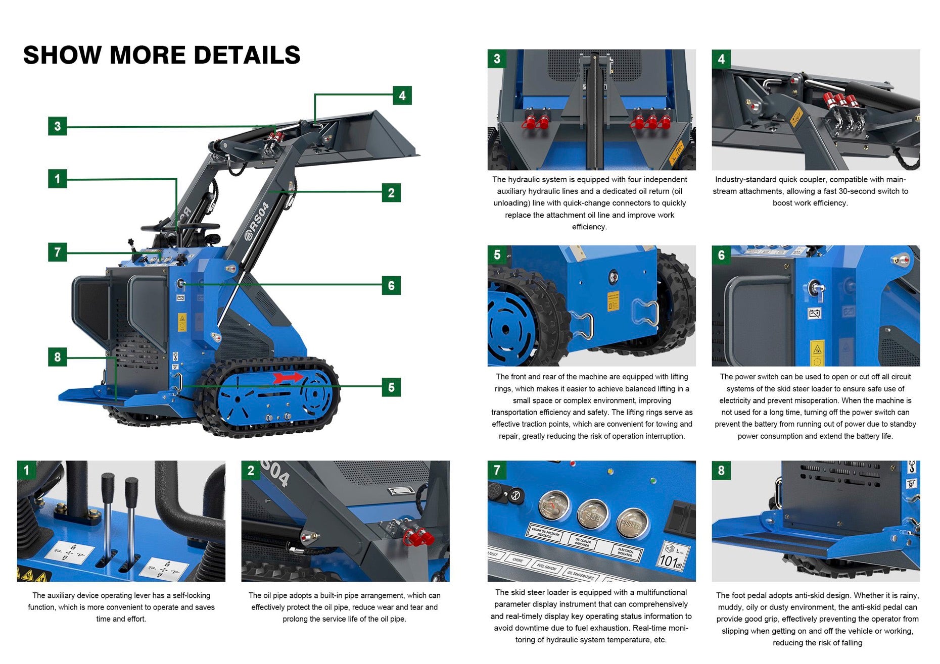 Rippa RS04 minilæsser er udstyret med en stærk 8,3 kW vandkølet Kubota Z482 dieselmotor.