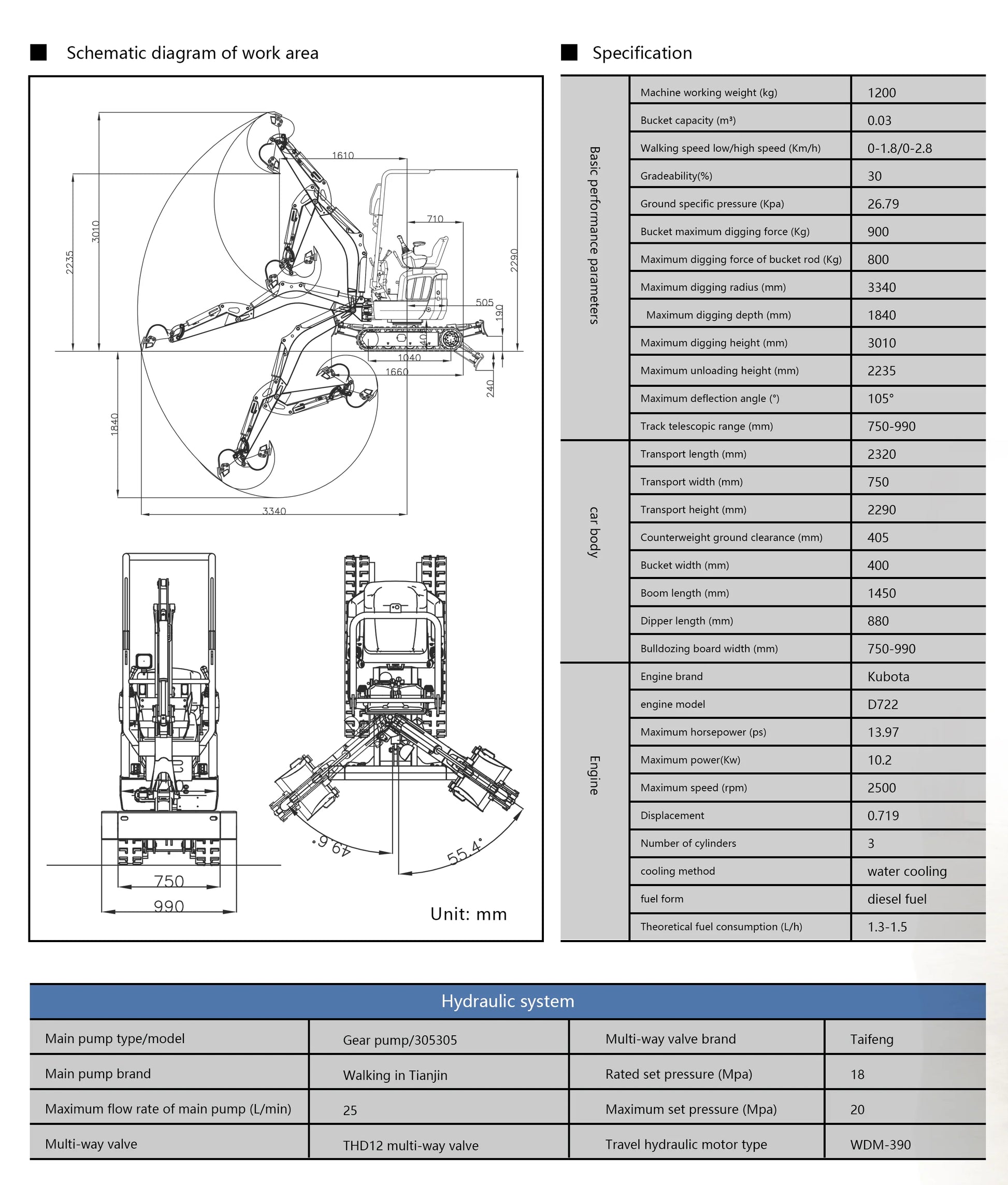 R13 PRO er en alsidig minigraver med en arbejdsvægt på 1200 kg, perfekt til både bygge- og haveprojekter. Med en gravedybde på 1,84 meter og en kraftfuld Kubota-dieselmotor kombinerer den præcision og effektivitet. Ideel til professionelle, der værdsætter fleksibilitet og pålidelighed.
