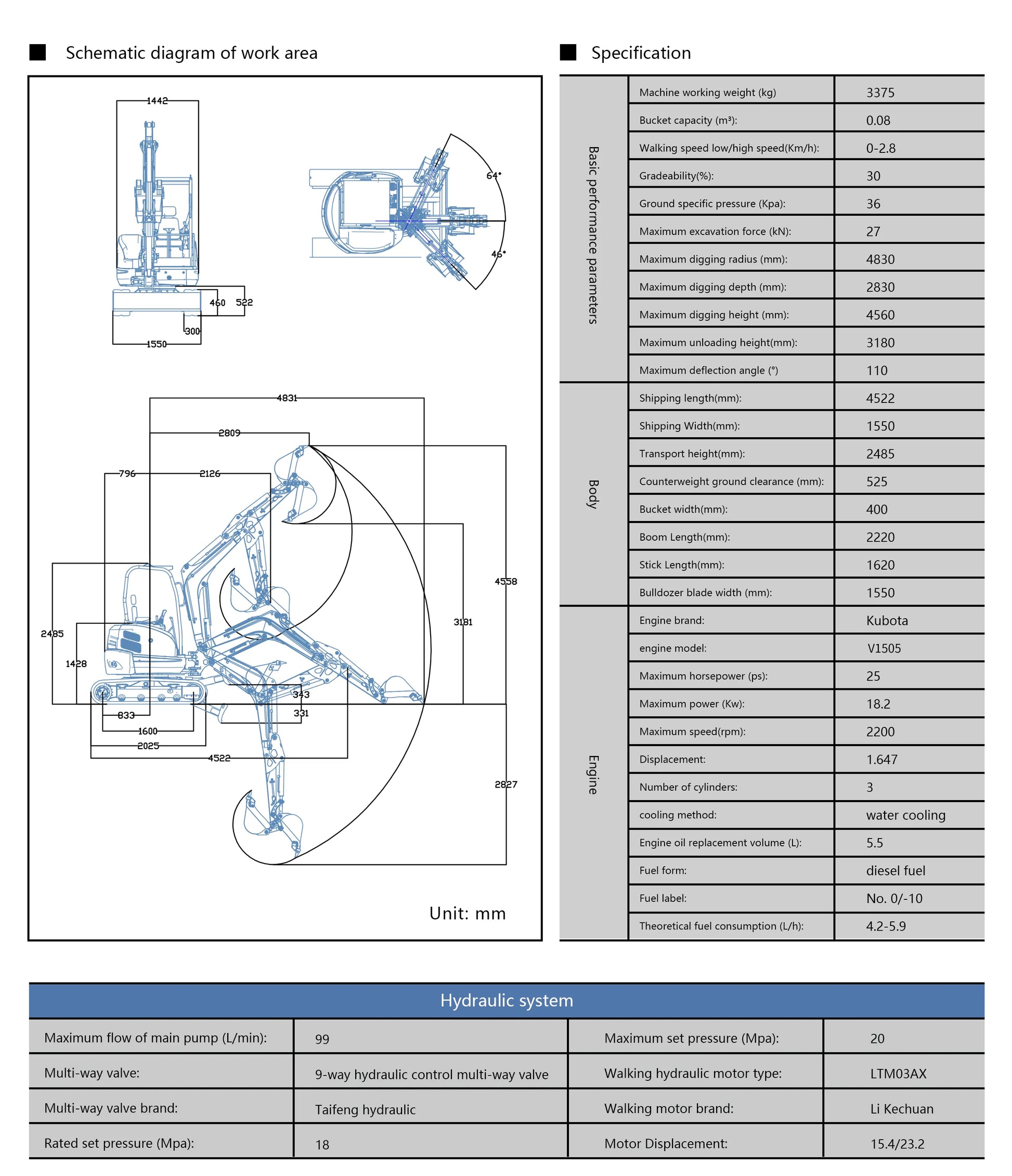R32 PRO er en højtydende gravemaskine med en arbejdsvægt på 3.375 kg, perfekt til store byggeprojekter og krævende opgaver. Med en gravedybde på 2,83 meter og en imponerende gravekraft på 27 kN garanterer den maksimal effektivitet og pålidelighed. Den ideelle maskine til professionelle med høje krav.